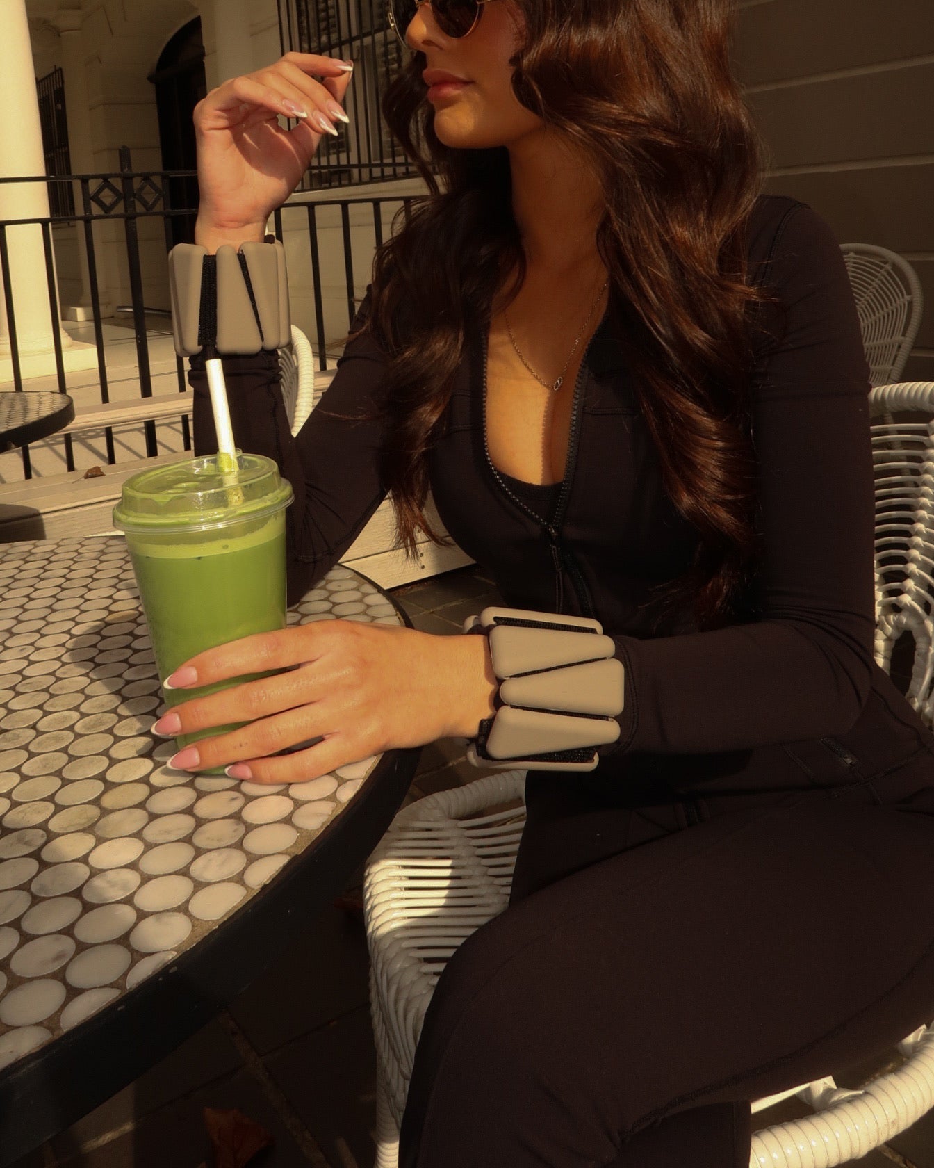 Levaïa loops wrap comfortably around your wrists or ankles, adding gentle resistance to amplify your Pilates, barre, yoga, or walk sessions. The smooth, matte taupe finish delivers a sleek, elevated aesthetic that pairs effortlessly with your activewear — or your lifestyle. If you want a lighter enhancement simply remove the mini triangles to your liking!